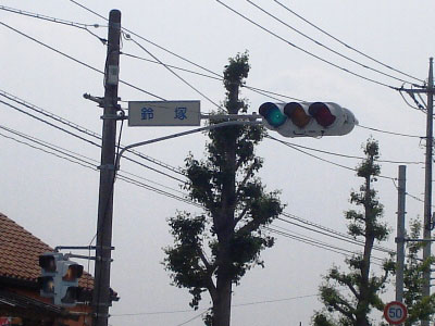 常総ふれあい道路に「鈴塚」という信号(写真1)があります。その交差点から南に入ったすぐのところに、「馬頭観世音」の碑と道標(写真2)があります。