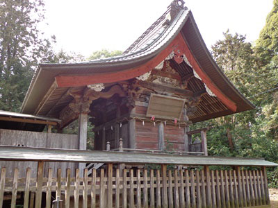 尚 神殿内の御神輿は元禄十三年(一七〇〇)辰之六月高倉村紋右衛門寄付とある。
