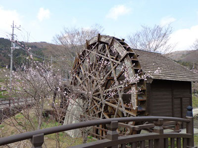 ここには直径7mと言われる水車(写真3)が回っています。また敷地内には、小町文芸賞入賞作品(短歌)の碑がたくさん建っています。あいにく訪ねた日(2013年3月22日)はまだ工事中で、本館には入れましたが新館はまだ立ち入り禁止でした。4月27日がオープンだと言うことでした。