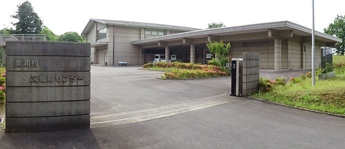 写真1は,駐車場にある貝塚の全体図です。全体は公園になっています。入口近くには写真2の「美浦村文化財センター」があります。玄関には「陸平研究所」の看板もあります。2019.06.20追記:「陸平研究所」については,美浦村のホームページの文化財のページに次の記述があります。【美浦村文化財センターの前身は、村内の遺跡から出土した遺物の収蔵・整理施設であったプレハブ建物でした。そこには陸平貝塚などの発掘に参加する多くの学生や研究者が集まり、熱心に調査研究がおこわれたため、「陸平研究所」という看板が掲げられました。その後、陸平貝塚の保存と活用を進めるボランティアの方たちの活動拠点にもなり、そこからさまざまなイベントや体験事業が発信されるようになります。】