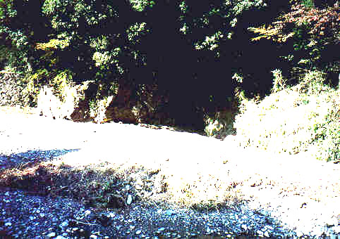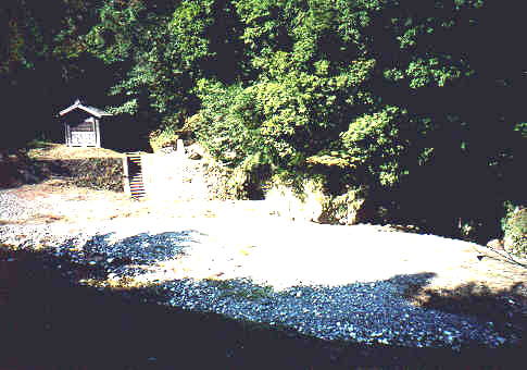 写真では良くわからないのですが,右のほう一段と暗い部分が,「諏訪の水穴」入り口です.