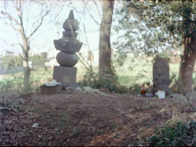 もし、この記憶が正しいとすれば、「平将門伝説」(村上春樹著2001年汲古書院)240ページにある【大日塚 取手市戸頭 平将門の戦いで、この地を守って死んだ五人を祀ったという。】に、当たるのではないかと思います。「取手市郷土資料写真集」(取手市教育委員会昭和47年)67ページにそれらしい写真があります。【応安五年辰十月十七日】という碑文があったそうです。応安は北朝の年号で五年は1372年ですから、将門時代とはずいぶん離れていますが。