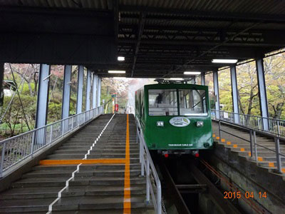 写真9 平将門公史跡看板(2015年4月14日撮影) | 写真10 ケーブルカー(2015年4月14日撮影) |