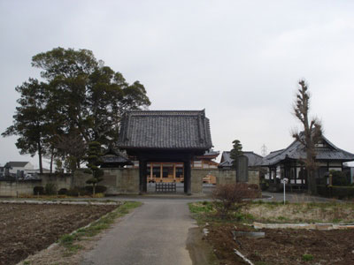 国道294号を取手から下妻方面に向かい、小絹駅入り口の次の信号を右折します。谷原大橋で小貝川を渡ると、すぐ「鬼長」という信号で、そこから二つ目、信じられないくらいの細い道を右折すると、左側に聖徳寺があります。
