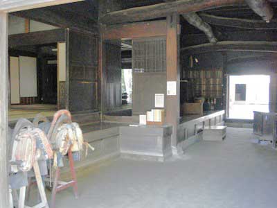 入り口は長屋門になっています。かなり立派な長屋門です。写真2は屋敷の内部から見た様子です。右奥が「一の蔵」です。
